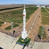 China rolled a Long March booster to a desert launch pad Saturday, setting up for the launch of three astronauts as soon as this week on a mission to dock with an orbiting laboratory module 200 miles above Earth.