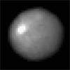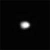 The blob of light seen here in this Cassini spacecraft picture is Saturn's moon Telesto, which shares its orbital path with the much larger moon Tethys. Telesto is 15 miles across. This view hints at a flattened, potato-like shape for Telesto -- a common shape for Saturn's smaller moons.