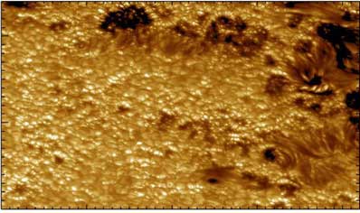 Scientists image 3-D surface of the sun LOCKHEED MARTIN NEWS RELEASE Posted: June 17, 2003 Solar physicists from Lockheed Martin, the National Center for Atmospheric Research, The Institute of Theoretical Astrophysics of the University of Oslo, and the Institute for Solar Physics of the Royal Swedish Academy of Sciences have analyzed the highest resolution images ever taken near the solar limb (or visible edge of the sun), and found a surprising variety of structure. Their results, which are being reported today at the American Astronomical Society's Solar Physics Division meeting in Laurel, Maryland, address long-standing theories on how the brightness of the Sun varies over the course of its magnetic cycle. Such changes may influence the Earth's climate on long timescales.