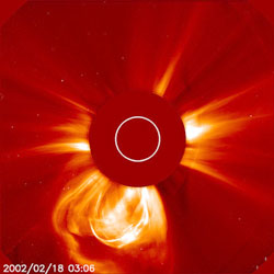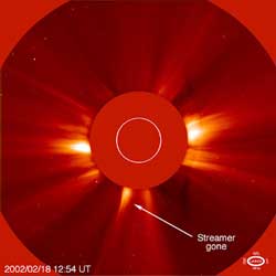 "The Sun is like a snake that sheds its skin," comments Dr. Nat Gopalswamy of NASA's Goddard Space Flight Center, Greenbelt, Md., lead author of the new report, which appears in the Astrophysical Journal. "In this case, it's a magnetic skin. The process is long, drawn-out and it's pretty violent. More than a thousand coronal mass ejections, each carrying billions of tons of gas from the polar regions, are needed to clear the old magnetism away. But when it's all over the Sun's magnetic stripes are running in the opposite direction." "This analysis of nearly eight years of CME data is a big step forward in making sense of space weather," said Dr. Joseph Gurman, NASA Project Scientist for SOHO at NASA's Goddard Space Flight Center, Greenbelt, Md. "By identifying the solar origin of these events with CMEs of different speeds and appearances, and at different latitudes, it improves our capability to predict space weather that can affect the Earth, at different phases of the solar activity cycle." Apparently random CMEs turn out to be signs of the Sun's diligent housekeeping. It keeps sweeping away, out into space, untidy magnetic fields created by sunspots and other contortions in its atmosphere. The climax comes in a busy period of "spring cleaning" after the count of sunspots has peaked, every 11 years. It leaves the Sun with its main magnetic field completely overturned, and its north and south magnetic poles swapped around. The Astrophysical Journal report published by Gopalswamy and his colleagues takes stock of seven years of observations of such events by the SOHO spacecraft. It also compares them with the mass ejections recorded in 1979-85 by a US Air Force satellite, P78-1. Helping the scientists to decipher the events seen by the spaceborne telescopes are data from ground-based instruments at Kitt Peak, Ariz., and Nobeyama, Japan. What emerges is a systematic pattern in the outbursts, according to the new research. It changes during the sunspot cycle, as the numbers of dark sunspots seen each day on the Sun's bright surface first increases and then diminishes again. The mass ejections are often directly associated with the sunspots, which always lie in the Sun's equatorial belt or at mid-latitudes. Other mass ejections occur near the Sun's poles, far away from any sunspots. These events are most frequent at the peak of sunspot activity, but they can continue for a while as the count of sunspots begins to decline. By getting rid of the magnetic remnants of previous activity, the high-latitude outbursts groom the polar magnetic fields in a new configuration, according to the team. When SOHO began its watch early in 1996, the Sun was quiet. There were very few sunspots and CMEs happened less than once a day. But during the most intense solar activity, 1999-2000, there were more than five a day, on average twice as many as scientists expected. What's more, the average speed of the ejected clouds of gas doubled, from 990,000 to 1,980,000 kilometres per hour (about 610,000 to 1,200,000 miles/hr.). When the sunspot count passed its peak in July 2000, CMEs continued at a high rate. They did not reach their own peak in frequency until October 2002. Events followed a different timescale in the two polar regions of the Sun. A flurry of high-latitude mass ejections occurred near the solar north pole, completing the magnetic reversal there by November 2000. The south polar region lagged behind, and its new magnetic pole was not "clean" until May 2002. In effect, the solar snake shed the magnetic skin first from its head and then from its tail. The scientific team includes Gopalswamy, Dr. Alejandro Lara and Dr. Seiji Yashiro of the Catholic University of America, Washington, DC, and Dr. Russell A. Howard of the Naval Research Laboratory, Washington, DC. SOHO is a project of international cooperation between ESA and NASA.