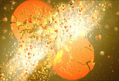 Asteroid collisions may explain star's appearance UNIVERSITY OF FLORIDA NEWS RELEASE Posted: January 24, 2005 The recent collision of two huge asteroids or tiny planets may be the cause of the mysterious lopsided appearance of the most famous of the universe's planet-forming stars, a team of astronomers says.
