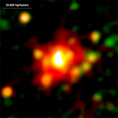 "This 25-year-old candle in the night has allowed us to study aspects of a star explosion never before seen in such detail," said Dr Stefan Immler, leader of the team, from NASA's Goddard Space Flight Center, USA. "All the important information that usually fades away in a couple of months is still there." Among the many unique finds is the history of the star's stellar wind dating back 16 000 years before the explosion. Such a history is not even known about our Sun. Also, the scientists could measure the density of the material around the star, another first. The lingering mystery, though, is how this star could fade away in visible light yet remain so radiant in X-rays. Stars explode when they run out of fuel to burn. Stars more than 10 times the mass of our Sun will explode in an event called a 'core-collapse supernova'. Without fuel and thus energy to support their gravity, such stars first implode. The core reaches a critical density, and much of the collapsing matter gets bounced back out violently into space by powerful shockwaves. Supernovae can outshine an entire galaxy and are often easily seen in neighbouring galaxies with simple amateur telescopes. Supernovae are typically half as bright after about ten days and fade steadily after that, regardless of the wavelength. SN 1979C has in fact faded in optical light by a factor of 250 becoming barely visible with a good amateur telescope. In X-rays, however, this supernova is still the brightest object in its host galaxy, M100, in the constellation 'Coma Berenices'. In identifying the history of the star that created SN 1979C, the team found that this star, about 18 times more massive than our Sun, produced fierce stellar winds. That material was flung into space for millions of years, creating concentric rings around the star. The X-rays - produced after the explosion when the supernova shock caught up with the stellar wind and heated it to a temperature of several million degrees - illuminated 16 000 years' worth of stellar activity. "We can use the X-ray light from SN 1979C as a 'time machine' to study the life of a dead star long before it exploded," said Immler. The detailed analysis was only possible because SN 1979C has not yet faded away. Scientists have 25 years' worth of data in a variety of wavelengths, from radio waves through to optical/ultraviolet and X-rays. They speculate that the abundance of stellar wind has provided ample material to keep SN 1979C glowing so brightly. The team also captured a rare glimpse of the ultraviolet radiation from the supernova using XMM-Newton. The ultraviolet image independently confirms what the X-ray analysis found: that the circumstellar material - covering a region 25 times larger than our Solar System - has a relatively high density of 10 000 atoms per cubic centimetre, or about 1000 times denser than the wind from our Sun. The ultraviolet image also shows galaxy M100 in detail never seen before. "XMM-Newton is known among scientists as a superior X-ray observatory, but the study of SN 1979 demonstrates the importance of the satellite's simultaneously observing ultraviolet and optical telescope," said Dr Norbert Schartel, XMM-Newton Project Scientist at ESA's European Space Astronomy Centre (ESAC) in Vilspa, Spain. |