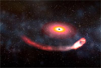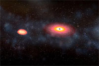 The team, which includes Kevin Hurley, senior space fellow at the University of California, Berkeley's Space Sciences Laboratory, will announce its results in the Oct. 6 issue of the journal Nature. "This is the first secure measurement that links the short bursts to the compact object collision theory," said Garrett Jernigan, a research physicist at the laboratory. One of the nagging mysteries of cosmic gamma-ray bursts, the most luminous explosions in the universe, is whether all are produced the same way. "These bursts come in a bewildering array of shapes and varieties, and when you're shopping for a theory to explain them, one size may not fit all," Hurley said. The breakthrough burst came on July 9 from the constellation of Grus (the crane) in the southern sky, and lasted only one-tenth of a second. The burst was captured by HETE-2, a spacecraft launched in 2000 by an international collaboration involving the United States, Japan, France and other partners. "That was the clue we were waiting for," said Jernigan. "Bursts seem to come mainly in two varieties - the long ones, which last about 20 seconds, and the short ones, which last a few tenths of a second. It's the short ones that have still been puzzling us." Evidence has mounted over the years that the longer bursts are caused by the collapse of massive stars in distant galaxies. These stars, which contain about 30 times the matter that our sun does, run out of nuclear fuel and collapse into black holes, emitting prodigious amounts of energy in gamma-rays, which are a very energetic version of X-rays. For the short bursts, though, there was no evidence that this was the case. On the contrary, there were many theories that these bursts are produced by the collision of two small, compact objects - either two neutron stars, or one neutron star and a small black hole. In either case, a larger black hole is formed as the result of a collision. The HETE-2 spacecraft pinpointed the source of the short burst on July 9 and triggered a series of observations by NASA's Chandra X-Ray Observatory and Hubble Space Telescope, as well as by a host of ground-based observatories. What they found, for the first time, was a faint, short-lived optical afterglow, which represents the embers of the explosion which produced the burst. This, in turn, allowed astronomers to identify the galaxy in which the burst had occurred, and to measure its distance. To their surprise, it was relatively nearby, by astronomical standards. "This burst took place only one billion light years from Earth, instead of the usual 10 billion light-years for the long bursts," said Nat Butler, a Townes Fellow at UC Berkeley and part of the HETE team. "When you do the math, it turns out that this was about a thousand times less energetic than a typical long burst." Another clue came from the position of the burst within the galaxy. It was on the outskirts, where double neutron star systems are expected to be. The details of the Hubble and Chandra observations, which clinch the case, are being published in a companion Nature paper by Derek Fox of Pennsylvania State University and his colleagues. Neutron stars are the remnants of normal stars after they have burned out. They measure about 10 miles in diameter, but contain the same amount of mass as our sun. They can exist in binary systems, where two neutron stars orbit each other, or where one neutron star orbits a black hole. Eventually, though, these systems must decay and the compact stars must collide, producing gravitational waves predicted by Albert Einstein's general theory of relativity. These waves have never been detected directly, and that is the goal of the Laser Interferometer Gravitational Wave Observatory (LIGO), which has just begun operation. "It's possible now that the first gravitational wave source that LIGO observes will also be a gamma-ray burst source," said Hurley. "Now that would be a spectacular discovery." |