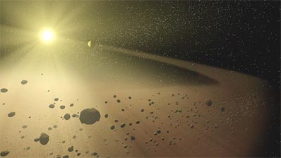 Debris disk could be forming infant terrestrial planets UNIVERSITY OF ARIZONA NEWS RELEASE Posted: December 14, 2005 Astronomers have found a debris disk around a sun-like star that may be forming or has formed its terrestrial planets. The disk - a probable analog to our asteroid belt - may have begun a solar-system-scale demolition derby, where the rocky remains of failed planets collide chaotically.