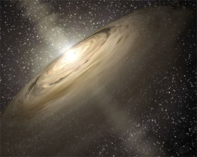 "This infant system might look a lot like ours did billions of years ago, before life arose on Earth," said Fred Lahuis of Leiden Observatory in the Netherlands and the Dutch space research institute called SRON. Lahuis is lead author of a paper to be published in the Jan. 10 issue of the Astrophysical Journal Letters. Lahuis and his colleagues spotted the organic, or carbon-containing, gases around a star called IRS 46. The star is in the Ophiuchus (pronounced OFF-ee-YOO-kuss), or "snake carrier," constellation about 375 light-years from Earth. This constellation harbors a huge cloud of gas and dust in the process of a major stellar baby boom. Like most of the young stars here and elsewhere, IRS 46 is circled by a flat disk of spinning gas and dust that might ultimately clump together to form planets. When the astronomers probed this star's disk with Spitzer's powerful infrared spectrometer instrument, they were surprised to find the molecular "barcodes" of large amounts of acetylene and hydrogen cyanide gases, as well as carbon dioxide gas. The team observed 100 similar young stars, but only one, IRS 46, showed unambiguous signs of the organic mix. "The star's disk was oriented in just the right way to allow us to peer into it," said Lahuis. The Spitzer data also revealed that the organic gases are hot. So hot, in fact, that they are most likely located near the star, about the same distance away as Earth is from our sun. "The gases are very warm, close to or somewhat above the boiling point of water on Earth," said Dr. Adwin Boogert of the California Institute of Technology, Pasadena. "These high temperatures helped to pinpoint the location of the gases in the disk." Organic gases such as those found around IRS 46 are found in our own solar system, in the atmospheres of the giant planets and Saturn's moon Titan, and on the icy surfaces of comets. They have also been seen around massive stars by the European Space Agency's Infrared Space Observatory, though these stars are thought to be less likely than sun-like stars to form life-bearing planets. Here on Earth, the molecules are believed to have arrived billions of years ago, possibly via comets or comet dust that rained down from the sky. Acetylene and hydrogen cyanide link up together in the presence of water to form some of the chemical units of life's most essential compounds, DNA and protein. These chemical units are several of the 20 amino acids that make up protein and one of the four chemical bases that make up DNA. "If you add hydrogen cyanide, acetylene and water together in a test tube and give them an appropriate surface on which to be concentrated and react, you'll get a slew of organic compounds including amino acids and a DNA purine base called adenine," said Dr. Geoffrey Blake of Caltech, a co-author of the paper. "And now, we can detect these same molecules in the planet zone of a star hundreds of light-years away." Follow-up observations with the W.M. Keck Telescope atop Mauna Kea in Hawaii confirmed the Spitzer findings and suggested the presence of a wind emerging from the inner region of IRS 46's disk. This wind will blow away debris in the disk, clearing the way for the possible formation of Earth-like planets. The Jet Propulsion Laboratory manages the Spitzer Space Telescope mission for NASA's Science Mission Directorate, Washington. Science operations are conducted at the Spitzer Science Center at Caltech. JPL is a division of Caltech. Spitzer's infrared spectrograph was built by Cornell University, Ithaca, N.Y. Its development was led by Dr. Jim Houck of Cornell. |