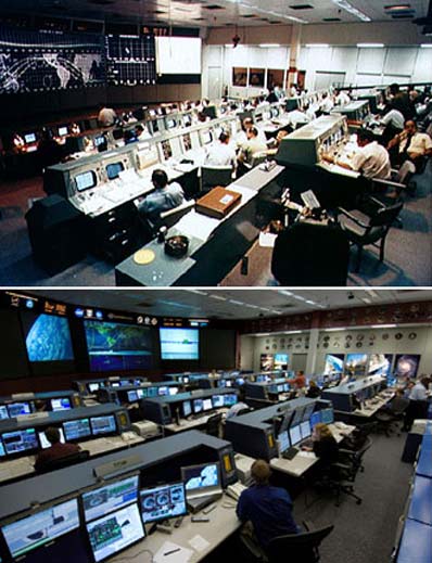 After nine months of remodeling, including changes to existing hardware to minimize expenses, the station team moved in on Oct. 6. They now staff the room around the clock and will continue to do so throughout the life of the station. The relocation was coordinated by Lead Station Flight Director John McCullough. A team of employees from across Johnson completed the renovations and systems testing on a tight schedule with no interruption of critical station operations. On Wednesday, that team gathered in FCR-1 for a ribbon cutting to commemorate the project's completion. At the ceremony, the team was joined by Johnson Director Mike Coats, Mission Operations Director Allen Flynt and Mission Operations Deputy Director Milt Heflin. Former Johnson Director and Project Mercury Flight Director Christopher Kraft, who is credited with developing NASA's original concepts of human space flight control, was a special guest. The old room had about 16 consoles for flight control disciplines, such as space station electrical and environmental systems. Several disciplines had to share consoles depending on station activities under way. "When we were doing complex operations, such as spacewalks, launches or rendezvous and dockings, we had to relocate to the larger shuttle flight control room or use back rooms," said McCullough. "In that configuration the team didn't have the best possible situational awareness of what was going on." The new room has 20 consoles and more space for safety and comfort. Its existing consoles and individual monitors were updated. Where the old room had only two front screens, the new facility has three large front screens to display information for the entire team and mounted high definition television cameras. To ensure a smooth transition, the station team has had temporary quarters in the Shuttle Flight Control Room since the last shuttle mission was completed in September. The temporary quarters allowed equipment to be moved and full check out of the new facility without interference to ongoing station expeditions. The walls of the new room reflect its long history, with 61 mission plaques displayed from flights supported there. New plaques will be added now for each mission the station team supports as the room again makes history. "I like to hearken back to the Apollo operations and think that the ghosts from that time are still in the room," said Chief Flight Director Phil Engelauf of the new station flight control room. "The symbolism is not lost on the new generation of flight controllers working there." The first new plaque to be added will be for shuttle mission STS-116, targeted to launch in December. |