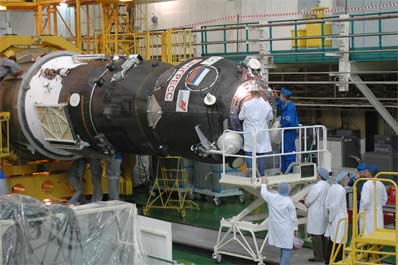 Specialists prepare the Progress M-58 for its launch. Credit: Energia