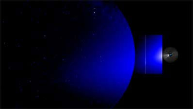 The new panoramic views are created by combining images from the SECCHI suite of telescopes on both spacecraft. They allow scientists to track a type of solar disturbance called a Coronal Mass Ejection (CME) from its birth at the sun towards Earth. CMEs are violent eruptions of electrically charged gas, called plasma, from the sun's atmosphere. A CME cloud can contain billions of tons of plasma and move at a million miles per hour. As the CME cloud plows through the solar system, it slams into the slower solar wind, a thin stream of plasma constantly blowing from the sun. The collision with the solar wind generates a shock that accelerates electrically charged particles in the solar wind, causing radiation storms that can disrupt sensitive electronics on satellites and cause cancer in unshielded astronauts.
