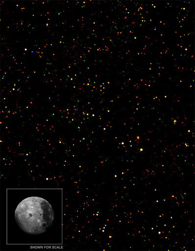 Material falling into these black holes at high rates generates huge amounts of light that can be detected in different wavelengths. These systems are known as active galactic nuclei, or AGN. "We're trying to get a complete census across the Universe of black holes and their habits," said Ryan Hickox of the Harvard-Smithsonian Center for Astrophysics (CfA) in Cambridge, Mass. "We used special tactics to hunt down the very biggest black holes." Instead of staring at one relatively small part of the sky for a long time, as with the Chandra Deep Fields -- two of the longest exposures obtained with the observatory -- and other concentrated surveys, this team scanned a much bigger portion with shorter exposures. Since the biggest black holes power the brightest AGN, they can be spotted at vast distances, even with short exposures. "With this approach, we found well over a thousand of these monsters, and have started using them to test our understanding of these powerful objects," said co-investigator Christine Jones, also of the CfA. The new survey raises doubts about a popular current model in which a supermassive black hole is surrounded by a doughnut-shaped region, or torus, of gas. An observer from Earth would have their view blocked by this torus by different amounts, depending on the orientation of the torus. According to this model, astronomers would expect a large sample of black holes to show a range of absorption of the radiation from the nuclei. This absorption should range from completely exposed to completely obscured, with most in-between. Nuclei that are completely obscured are not detectable, but heavily obscured ones are. "Instead of finding a whole range, we found nearly all of the black holes are either naked or covered by a dense veil of gas," said Hickox. "Very few are in between, which makes us question how well we know the environment around these black holes." This study found more than 600 obscured and 700 unobscured AGN, located between about six to 11 billion light years from Earth. They were found using an early application of a new search method. By looking at the infrared colors of objects with Spitzer, AGN can be separated from stars and galaxies. The Chandra and optical observations then verify these objects are AGN. This multi-wavelength method is especially efficient at finding obscured AGN. "These results are very exciting, using two NASA Great Observatories to find and understand the largest sample of supermassive black holes ever found in the distant universe", said co-investigator Daniel Stern, of NASA's Jet Propulsion Laboratory in Pasadena, Calif. The Chandra image is the largest contiguous field ever obtained by the observatory. At 9.3 square degrees, it is over 40 times larger than the full moon seen on the night sky and over 80 times larger than either of the Chandra Deep Fields. This survey, taken in a region of the Bootes constellation, involved 126 separate pointings of 5,000-second Chandra exposures each. The researchers combined this with data obtained from Spitzer, and Kitt Peak's 4-meter Mayall and the MMT 6.5-meter optical telescopes, both located outside Tuscon, Ariz., from the same patch of sky. NASA's Marshall Space Flight Center, Huntsville, Ala., manages the Chandra program for the agency's Science Mission Directorate. The Smithsonian Astrophysical Observatory controls science and flight operations from the Chandra X-ray Center, Cambridge, Mass. |