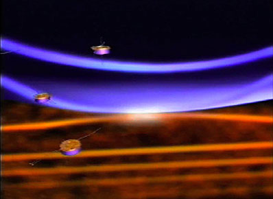 The Earth's magnetic field creates a buffer zone, the magnetosphere, between our planet's atmosphere and the particles released during these eruptions. The Sun also releases a steadier flow of charged particles called the solar wind. On the large-scale, any heading this way buffet the magnetosphere, and are deflected by it. Plasma physicists describe this behaviour with a theory called 'magneto-hydrodynamics' (MHD). On smaller scales, however, the picture becomes rather more complicated. The particles can actually flow across the magnetic field lines.This makes the mathematics of the behaviour more difficult. First to misbehave are the ions (positively charged particles). These break away from simple MHD on scales of less than a few hundred kilometres. On even smaller scales, less than 10 kilometres, the electrons (negatively charged particles) begin playing by other rules, too. The new Cluster measurements reveal the electric field on the scale of a few hundred kilometres. "This is the first ever measurement of this term," says Paul Henderson, from University College London's Mullard Space Science Laboratory, UK, who led the investigation. On 17 August 2003, Cluster was flying high above the night-time hemisphere of the Earth with an average separation of 200 kilometres between spacecraft. Data from several instruments shows that at 18:00 CET, a reconnection event took place and swept across the spacecraft. Using data from Cluster's Plasma Electron and Current Experiment (PEACE) Henderson and collaborators calculated the pressure of electrons at each spacecraft and then calculated the difference between them and the variation with time. Using these quantities they calculated the electric field present near a reconnection site. "This is an impossible calculation to make without four spacecraft," says Henderson. Now that the scientists can calculate the electric field in such a way, they have a new window into the process of magnetic reconnection. Magnetic reconnection within Earth's magnetosphere regularly takes place on the night-time side of our planet, where the flow of the solar wind stretches out the magnetic field into a long tail. When the field reconnects in this region, it triggers jets of energetic particles that can cause auroral lights but can also damage satellites. This new Cluster result takes scientists a step closer to seeing the precise details of magnetic reconnection. "When you think that the magnetosphere stretches over a million kilometres through space, we are actually looking at a minuscule part of it," says Henderson. And that's exactly what plasma scientists want - the microphysics. |