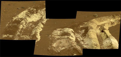 The bright white and yellow material was hidden under a layer of normal-looking soil until Spirit's wheels churned it up while the rover was struggling to cross a patch of unexpectedly soft soil nearly a year ago. The right front wheel had stopped working a week earlier. Controllers at NASA's Jet Propulsion Laboratory, Pasadena, Calif., were trying to maneuver the rover backwards, dragging that wheel, to the north slope of a hill in order to spend the southern-hemisphere winter with solar panels tilted toward the sun. Due to the difficulty crossing that patch, informally named "Tyrone," the team chose to drive Spirit to a smaller but more accessible slope for the winter. Spirit stayed put in its winter haven for nearly seven months. Tyrone was one of several targets Spirit examined from a distance during that period, using an infrared spectrometer to check their composition. The instrument detected small amounts of water bound to minerals in the soil. The rover resumed driving in late 2006 when the Martian season brought sufficient daily sunshine to the solar panels. Some of the bright soil from Tyrone was dragged to the winter site by the right front wheel, and Spirit spent some time measuring the composition and mineralogy of these materials. The material is sulfur-rich and consists of sulfate salts associated with iron, and likely calcium. "These salts could have been concentrated by hydrothermal liquid or vapor moving through the local rocks," said rover science team member Dr. Albert Yen, a geochemist at JPL. Two other patches of bright soil uncovered by Spirit before Tyrone were also sulfur-rich, but each had similarities to local rock compositions that were different at the three sites, suggesting localized origins. Researchers will watch for more patches of bright soil. "If we find them along fractures, that would suggest they were deposited at ancient gas vents," Arvidson said. "If they are at the saddles between hills, that would suggest the deposits formed where groundwater came to the surface." Scientists are describing recent findings by Spirit and Opportunity at the Lunar and Planetary Science Conference this week in League City, Texas. Spirit has driven away from the Tyrone area for a clockwise circuit around a plateau called "Home Plate." Researchers want to learn more about Home Plate, which Spirit visited briefly in early 2006. They are checking a hypothesis that explosive volcanism, driven by the interaction of magma with water, formed Home Plate and similar features. Halfway around Mars, Opportunity is exploring clockwise around "Victoria Crater," a bowl about 800 meters (half a mile) across. Cliff-like promontories alternate with more gradually sloped alcoves around the scalloped rim. The impact that dug the crater exposed layers that had been buried. "The images are breathtaking," said Dr. Steve Squyres of Cornell University, principal investigator for the rovers. "Every promontory we've seen has the kinds of layering expected for ancient wind-blown sand deposits." The layers consist of sulfate-rich sandstone similar to other bedrock Opportunity has been finding in Mars' Meridiani region for more than three years. The minerals come from a wet period in the region's ancient past. While exploring Victoria's rim with Opportunity, researchers have been on the lookout for rocks that might have been tossed out from layers deeper and older than the sulfates. "We found one group of cobbles that were clearly more resistant to erosion than the sulfate blocks thrown out onto the rim," Squyres said. "We checked the composition of one that we called Santa Catarina. Our suspicion now is that Santa Catarina is a piece of a meteorite." That would be the fifth meteorite found by the rovers. More than three years into what was planned as a three-month mission on Mars, both Spirit and Opportunity remain in good health, though with signs of aging. "The team has learned how to drive Spirit very well with just five wheels," said JPL's Dr. John Callas, rover project manager. "We could accomplish longer drives if there were more energy, but Spirit's solar panels have gotten really dusty. We would welcome another wind-related cleaning event." It's about the same time of year on Mars now as it was when winds blew dust off Spirit and its solar panels in 2005, increasing energy output. JPL, a division of the California Institute of Technology, Pasadena, manages the Mars Exploration Rover project for NASA's Science Mission Directorate.