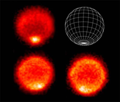 A warm south pole? Yes, on Neptune! NASA/JPL NEWS RELEASE Posted: September 19, 2007 PASADENA, Calif. -- An international team of astronomers has discovered that Neptune's south pole is much hotter than the rest of the planet. They have published the first temperature maps of the lowest portion of Neptune's atmosphere, which show that this warm south pole is providing an avenue for methane to escape out of the deep atmosphere. "The temperatures are so high that methane gas, which should be frozen out in the upper part of Neptune's atmosphere, the stratosphere, can leak out through this region," said Glenn Orton of NASA's Jet Propulsion Laboratory, Pasadena, Calif. Orton is lead author of a paper appearing in the Sept. 18 issue of the journal Astronomy and Astrophysics. These findings were made using the Very Large Telescope, located in Chile, operated by the European Organization for Astronomical Research in the Southern Hemisphere (known as ESO).