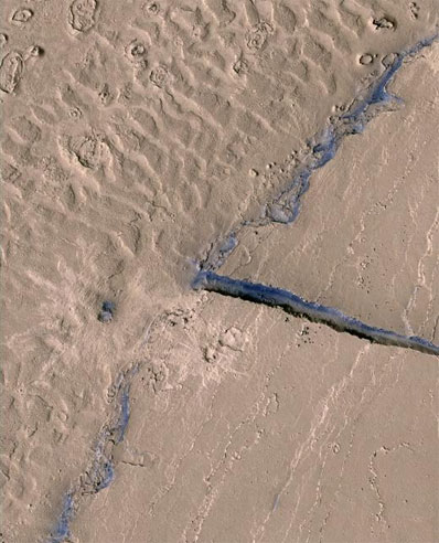 An accompanying paper by Windy Jaeger of the U.S. Geological Survey, Flagstaff, and co-authors uses images from the high-resolution camera to show lava flows completely draping a young Martian channel network called Athabasca Valles. This creates ponded lava over an expanse that other researchers had interpreted in 2005 as a frozen sea. Richard Zurek, project scientist for Mars Reconnaissance Orbiter at NASA's Jet Propulsion Laboratory, Pasadena, Calif., said, ³These latest increases in observational capabilities, individually and in combination, reveal a more complex Mars, a planet with a rich history that we are still learning to read." JPL manages the mission for NASA¹s Science Mission Directorate, Washington. Lockheed Martin Space Systems, Denver, is the prime contractor and built the spacecraft. The University of Arizona operates the High Resolution Imaging Science Experiment camera, built by Ball Aerospace & Technologies Corp., Boulder, Colo. The Johns Hopkins University Applied Physics Laboratory, Laurel, Md., operates the Compact Reconnaissance Imaging Spectrometer for Mars. The Shallow Subsurface Radar was provided by the Italian Space Agency; its operations are led by the University of Rome, and its data are analyzed by a joint Italian-U.S. science team. |