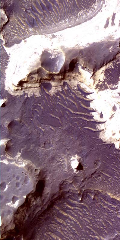 "Color data are proving very useful in interpreting geologic processes and history on Mars," McEwen said. "The images we're releasing today include views of some of the most interesting and compositionally diverse areas on the planet." The camera team developed computer software that automatically processes images from the different color filters into color images. "The technical hurdle has been that the sets of different color detectors are staggered within the camera focal plane array, and the spacecraft isn't perfectly steady as it operates in space," the camera's operations manager, Eric Eliason of UA, said. Color is a boon to geologists who have been trying to discriminate different surface materials and their relation to the topography, McEwen said. "Color clearly identifies basic material distinctions like dust, sand or rocks, light-toned layered material, and frost or ice," he said. Color also helps geologists correlate layers in the Martian terrain. And scientists will be able to combine data from the high-resolution camera and the imaging spectrometer to make detailed maps of minerals and soil types on the planet. The Mars Reconnaissance Orbiter and the Mars Science Laboratory missions are managed by JPL, a division of the California Institute of Technology in Pasadena, for the NASA Science Mission Directorate, Washington. Lockheed Martin Space Systems, Denver, is the prime contractor and built the spacecraft. The High Resolution Imaging Science Experiment is operated by the University of Arizona. Ball Aerospace and Technologies Corp., Boulder, Colo., built the instrument.