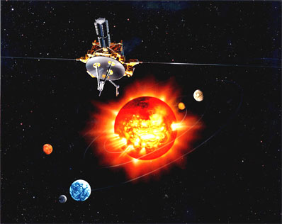 Artist concept of Ulysses making a north polar pass. Credit: NASA/JPL