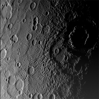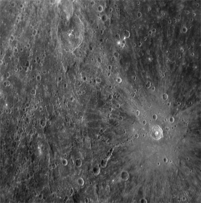 The highest resolution images from Monday are also giving scientists a more detailed view of known surface features, including a giant 800-mile-wide impact basin named Caloris. "It is already clear that MESSENGER's superior camera will tell us much that could not be resolved even on the side of Mercury viewed by Mariner's vidicon camera in the mid-1970s," the science team said in a written statement. The Caloris basin, believed to be one of the youngest large impact craters in the solar system, lied in partial darkness during the Mariner 10 mission. "The new image shows the complete basin interior and reveals that it is brighter than the surrounding regions and may therefore have a different composition," the science team said.