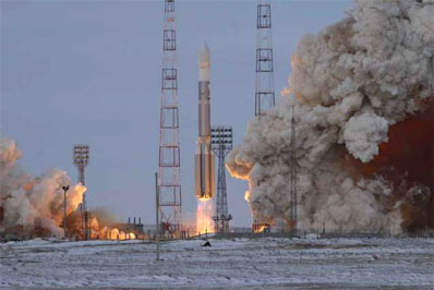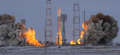 The Proton rocket launched from the snow-covered plains of Kazakhstan at 1043 GMT (5:43 a.m. EST). The silver-and-white launcher arced northeast from the Baikonur Cosmodrome and arrived in a preliminary low-altitude orbit less than 10 minutes after liftoff. The Block DM upper stage completed two burns to place the three Glonass satellites in a circular orbit nearly 12,000 miles high with an inclination of 64.8 degrees. Spacecraft separation occurred at about 1415 GMT (9:15 a.m. EST), according to the Russian Space Agency. The 3,000-pound satellites will be positioned in orbital planes to rejuvenate the Glonass constellation, Russia's counterpart to the U.S. Global Positioning System. Thursday's additions to the Glonass family bring the fleet membership to 20 satellites. The constellation includes 16 fully operational spacecraft and a partially active satellite, according to an update posted this week on the Russian Space Agency's Web site. The three satellites launched Thursday will soon begin commissioning and tests before entering service early next year. The spacecraft are designed to last at least seven years. A group of 18 satellites is required to provide full coverage of Russia, while 24 spacecraft can reach users around the world. Russian officials want to achieve a full Glonass constellation of 30 satellites, including spares, by 2011.