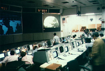 Mission Control Room at the Johnson Space Center, Houston was the focal point for both simulation training of flight controller as well as flight control of lunar missions. Credit: NASA/Apollo Archive.com