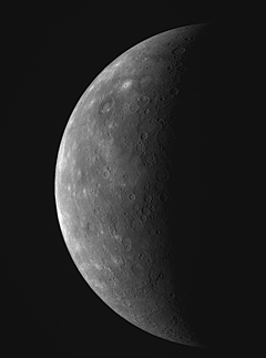 The primary objective of the flyby was to use Mercury's gravity to alter the craft's trajectory, setting the probe on a course to intercept the innermost planet again in March 2011. "Although the events did not transpire as planned, the primary purpose of the flyby, the gravity assist, appears to be completely successful," said Eric Finnegan, mission systems engineer at the Johns Hopkins Applied Physics Laboratory in Laurel, Md. Scientists carefully crafted a series of science observations using MESSENGER's eight instruments to take advantage of the encounter. But four minutes prior to closest approach, ground stations lost tracking signals from the spacecraft earlier than expected. The loss of communications occurred as MESSENGER was flying in the shadow of Mercury without solar power. After passing behind Mercury, MESSENGER's signals were reacquired and engineers returned the probe to normal operations overnight. MESSENGER automatically transitioned to a safe mode, halting its programmed command sequence and putting its instruments in a safe state, according to Finnegan. "We believe this mode transition was initiated by the on-board fault management system due to an unexpected configuration of the power system during eclipse," Finnegan said. About 150 megabytes of stored science and engineering data were beamed back to Earth early Wednesday morning. Officials will know more about the cause of the glitch after analyzing the data. Before Tuesday's flyby, engineers uplinked about 7,000 commands for MESSENGER to execute during the encounter. Scientists identified nine features, mostly impact craters, for MESSENGER's camera and surface composition spectrometer to closely study during the flyby sequence. Those observations were not completed because they were scheduled to occur after MESSENGER went into safe mode, according to Finnegan. Plans called for the spacecraft to take 1,559 pictures during the core imaging sequence. All of MESSENGER's instruments were expected to gather 50 megabytes of data during the most intensive 37 hours of the maneuver. Finnegan said all of the science activities during the probe's approach to the planet were completed, including imaging of 5 percent of Mercury's surface never seen before. MESSENGER also collected important data on Mercury's tenuous atmosphere and an enigmatic comet-like tail of particles streaming away from the planet.