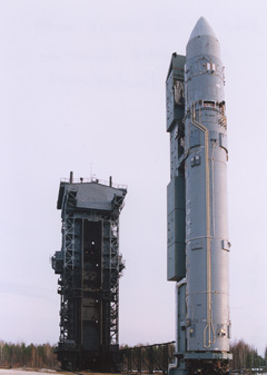 The Rockot is made by combining two stages of the SS-19 missile with a Breeze KM upper stage to deliver satellites to orbit. But Eurockot, the joint German-Russian company that oversees commercial Rockot flights, is still discussing potential deals with ESA for upcoming Earth observation satellites. "We're just presently preparing a proposal for the European Space Agency to address the future launches of additional Earth observation missions," said Peter Freeborn, director of sales and marketing at Eurockot's headquarters in Bremen, Germany. "This is a set of satellites which normally would have flown automatically on Vega." It is ESA's formal policy to award small institutional missions to the agency's Vega rocket, a new launcher being built to haul light satellites into space from the Guiana Space Center in South America. The ESA Ministerial Council, the agency's policy-making governing body, issued a decree in 2005 naming Vega the go-to rocket for all ESA small satellite missions. The council chose Rockot as a back-up option if Vega was not available. "That means as long as Vega doesn't exist or is not qualified, ESA has a leaning toward us to use our launch vehicle to do what Vega is supposed to do," Freeborn said. Eurockot was formed in 1995 between EADS Astrium and Khrunichev, the Russian contractor for the Rockot vehicle. Freeborn said about 150 SS-19 missiles, which were built in the 1980s, are available for launch. Khrunichev keeps 10 units in storage for speedy conversion to the Rockot configuration.