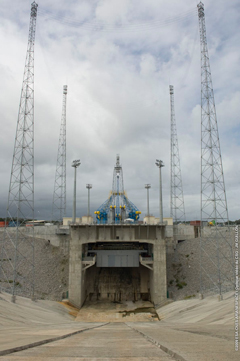 Russian workers have already completed a replica of the Soyuz launch pad at Baikonur, including a similar flame trench, launch table, erector system, swing arms and four lightning towers. "Most of the work on the launch pad is completed and we are now starting installation of the mobile gantry, which will be ready early next year. This should lead to a first launch in April or May, something like that," said Jean-Yves Le Gall, Arianespace chairman and CEO. Arianespace, which will operate the commercial Soyuz missions, has not selected a payload for the first flight of the launcher from Kourou. "It will be a (geosynchronous transfer orbit) satellite and we have several candidiates," Le Gall said. "We will see depending upon the availability date of the Soyuz and the satellites." Le Gall said there are contracts for 11 future commercial Soyuz launches, including multi-spacecraft flights for Europe's Galileo navigation system and the Globalstar mobile communications satellite fleet. Four new contracts for Soyuz missions have been signed this year, according to Le Gall. The 152-foot-tall rocket will take advantage of Earth's speedier rotation near the equator, receiving a natural boost that increases its lift capacity to about 7,000 pounds for typical communications satellite launches. The Soyuz can only haul about 4,000 pounds to such an orbit from Baikonur. Soyuz rockets launching from Kourou will include the upgrades of the Soyuz 2 program, such as a new digital control system and a more powerful third stage engine. Kourou flights will also use the ST-type fairing, a bulbous payload shroud with a diameter of almost 13.5 feet. |