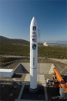 Taken from retired Peacekeeper missile stockpiles, the SR120 third stage is considered government-furnished equipment. The Minotaur 4 is propelled into space by three Peacekeeper stages, then an Orion 38 fourth stage motor inserts payloads into orbit. The first flight of the new rocket was delayed from last year after analyses indicated the gas generator device that powers the third stage steering system would produce unintended thrust after the motor burns out. Officials were concerned cold gas attitude control thrusters would attempt to compensate for the unintended thrust. "It was possible before the diffuser fix mentioned above was implemented that this moment would eventually cause the depletion of this cold gas during long coast periods, possibly causing loss of control," an Air Force Space Development and Test Wing spokesperson said. The diffuser will be installed on all Minotaur 4 third stages to reduce the gas generator's unintended thrust to acceptable levels well within the control abilities of the cold gas thrusters, according to the Air Force. A Peacekeeper SR120 motor outfitted with the diffuser will be ignited during a ground test March 31. "This static fire will provide additional confidence that the implemented diffuser solution is functioning as designed," the Air Force said in a statement. If the test goes well, a suborbital three-stage Minotaur 4 rocket will launch a Defense Advanced Research Projects Agency high-speed glider around April 20. The Hypersonic Technology Vehicle, or HTV, will be boosted to a precise point in space from Vandenberg Air Force Base, Calif., then follow a series of programmed range and cross-range maneuvers before impacting near Kwajalein Atoll in the Pacific Ocean. The third stage diffuser will fly on the HTV mission as a demonstration, although the suborbital flight does not require the new system. Three satellite launches are scheduled as soon as this summer, beginning with a multi-payload mission for the Air Force Space Test Program no earlier than May 28. Launching from Kodiak Island, Alaska, the Minotaur 4 rocket will shoot a cache of military, NASA and university satellites into orbit. The 2,200-pound Space Based Space Surveillance satellite is also on the Minotaur manifest. The $800 million mission, also called SBSS Block 10, features an optical telescope to track objects circling in geosynchronous orbit 22,300 miles above Earth. SBSS could launch as soon as July, pending the results of ground and flight tests of the third stage gas generator diffuser, the Air Force said. A specific target launch could be determined in the next two weeks. The SBSS launch has been pushed back about three years, partially due to rocket issues. In a March 10 statement to the Senate Armed Services Committee's Subcommittee on Strategic Forces, a Government Accountability Office manager stated SBSS program officials and contractors are studying the feasibility of launching the payload on a larger Delta 2 rocket. The Air Force spokesperson said the Minotaur 4 vehicle remains baselined to launch SBSS. Alaska will be the starting point for another Minotaur 4 flight around August, when the solid-fueled rocket will launch the military's experimental TacSat 4 satellite. TacSat 4 will test new tactical reconnaissance and surveillance sensors. At least eight Minotaur 4 rockets are slated to launch orbital and suborbital missions over the next few years. |