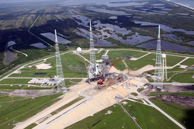 Cabana said although the mobile launcher was designed for the Ares 1 rocket, the structure could handle a wide range of other vehicles. NASA is continuing the launch pad facelift despite the cancellation fo the Ares 1 rocket. Agency leaders say KSC's facilities could be used by future still-undefined commercial crew transportation and heavy-lift rocket development programs. "There is still some work that we have to do, depending on what program will be used," Perez-Morales said. "There's some work with the sound suppression system, all the electronics, the refurbishment of the [liquid oxygen] and the hydrogen tanks, all the connections to the new mobile launcher. That will be some work that will be done in the next couple of years." After the space shuttle's retirement later this year, the center's launch pads, Vehicle Assembly Building and other infrastructure will be left without a clear mission. Senior officials last week announced KSC would be home of the commercial crew program office that will manage $5.8 billion over the next five years to oversee the development of private space transportation systems for NASA astronauts. The space center is also receiving $1.9 billion prescribed in NASA's projected budget for the next five years to modernize NASA and Air Force facilities into a 21st century launch complex. "My vision would be to have Launch Complex 39 be able to support multiple rockets," Cabana said. "We're also going to maintain the ability to still build a heavy-lift rocket that will take us beyond low Earth orbit and launching from Launch Complex 39."