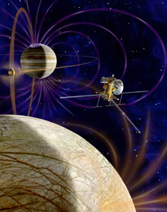 Under the cooperative Outer Planets Flagship Mission, NASA would build a $3.8 billion probe to orbit Europa, the moon of Jupiter that harbors a sea of liquid water underneath a global ice sheet. ESA would contribute a solar-powered orbiter to study Ganymede, another one of Jupiter's largest moons. Both spacecraft would start their missions in orbit around Jupiter itself to tour all of the giant planet's moons. Southwood said European space officials will decide whether to approve the Ganymede orbiter sometime next year. It is up against the International X-ray Observatory mission and a gravitational wave finder named LISA for a single $800 million launch slot under ESA's Cosmic Visions program. |