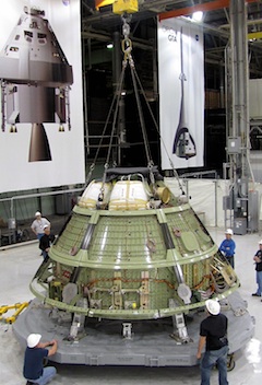 But the agency is still studying other alternatives and several different designs based on NASA's experience with the space shuttle and the Ares rocket. NASA expects to officially unveil a rocket architecture this summer. The 335-foot-tall heavy-lift rocket will have the ability to haul the multi-purpose crew vehicle and various other payloads into space. The multi-purpose crew vehicle is being designed as NASA's piloted capsule for missions to asteroids, Mars, the moon and other destinations beyond low Earth orbit. Its development will be managed by the Johnson Space Center in Houston, home of NASA's mission control and headquarters for the International Space Station and space shuttle programs. The Orion spacecraft, a survivor of the termination of the Constellation moon program, is the basis for the multi-purpose crew vehicle. |