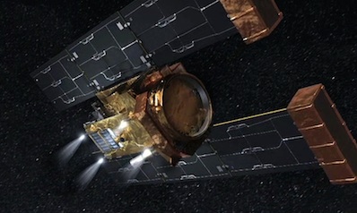 Stardust was also programmed to turn off its radio transmitters about 20 minutes after the burn, just in case it might interfere with some future mission using the same frequency. NASA announced the last transmission from Stardust was received at 7:33 p.m. EDT (2333 GMT) Thursday. Officials monitored the burn from the Jet Propulsion Laboratory in California and issued commands from the Lockheed Martin Corp. mission support center in Denver. Thursday's maneuver was the final exercise for Stardust, which has been running on low fuel as the craft was retasked for an extended mission after returning the first comet samples to Earth in 2006. It turns out Stardust had just enough propellant to pull off the high-speed flyby of comet Tempel 1 Feb. 14, yielding a cache of images of the ice ball, which was the target of NASA's Deep Impact mission in 2005. Deep Impact dropped a heavyweight mass that struck Tempel 1, and NASA dispatched Stardust to revisit the comet and see how the object changed in the ensuing five-and-a-half years. Renamed Stardust-New Exploration of Tempel, or Stardust-NExT, the mission kicked off in 2007, one year after Stardust brought a hardened sample return capsule back to Earth with dust particles from comet Wild 2. Stardust's engines fired for 146 seconds Thursday, according to Allan Cheuvront, the mission's program manager at Lockheed Martin. Officials expected the propulsion system would burn between a couple of minutes to more than 10 minutes. The mission-ending burn was designed to empty Stardust's reservoir of propellant, giving engineers fresh data on how well their fuel projections matched up with reality. "Stardust has been teaching us about our solar system since it was launched in 1999," said Tim Larson, Stardust-NExT's project manager from JPL in Pasadena, Calif. "It makes sense that its very last moments would be providing us with data we can use to plan deep space mission operations in the future." Stardust didn't carry a fuel gauge, so ground controllers came up with three methods to estimate how much propellant was left after its 3.5 billion mile journey.