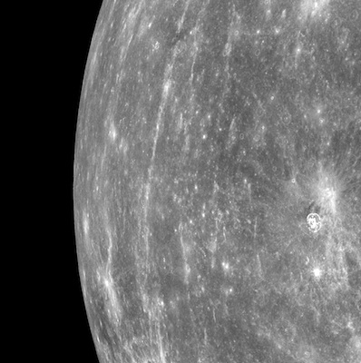 "That's just the barest hint of what we'll have on a regular basis when the mapping phase begins on the 4th of April," said Sean Solomon, MESSENGER's chief scientist from the Carnegie Institute of Washington. Designed for a one-year reconnaissance mission at Mercury, the MESSENGER probe slipped into orbit around the solar system's innermost planet March 17. Having already circled Mercury 24 times as of Wednesday afternoon, the craft will be ready for science operations this weekend. It is the first robotic probe to ever orbit Mercury, the last of the solar system's inner planets to be thoroughly explored. "This extremely dynamic planet, which changes its magnetosphere and atmosphere on timescales of minutes and hours, will be on continuous display for the first time," Solomon said. Mercury's cratered and dark surface resembles the moon at first glance, but the planet is much more dense than Earth's satellite and has a vastly different history. "Mercury is actually fairly dark on average," Solomon said. "It is darker than the front side of Earth's moon." MESSENGER, which stands for the Mercury Surface, Space Environment, Geochemistry and Ranging mission, is funded by NASA and managed by the Johns Hopkins University Applied Physics Laboratory in Laurel, Md. NASA released the first set of images of Mercury this week since MESSENGER arrived at the planet. The first picture, snapped at about 0920 GMT (5:20 a.m. EDT) Tuesday, shows ejecta from the bright Debussy crater contrasted against Mercury's dark surface. Debussy is a relatively youthful crater less than a billion years old, and it is surrounded by ray-like patterns of ejecta and smaller craters from material carved out during the catastrophic impact of a comet or asteroid. MESSENGER flew by Mercury three times in 2008 and 2009, taking pictures and data to build on three flybys during the Mariner 10 mission in 1974 and 1975. But enigmatic craters near Mercury's poles were left unexplored due to the orbital geometry of those fleeting visits. The first set of images from MESSENGER's new vantage point in orbit begin to uncover some of the mysteries of those regions. "It shows well some of the very southern craters that may be host for water ice," Solomon said. "That's a hypothesis that we've been aching to test now for 20 years, and we're finally starting imaging and other observations that will be able to peer, with chemical sensors and other instruments, into those crater floors."