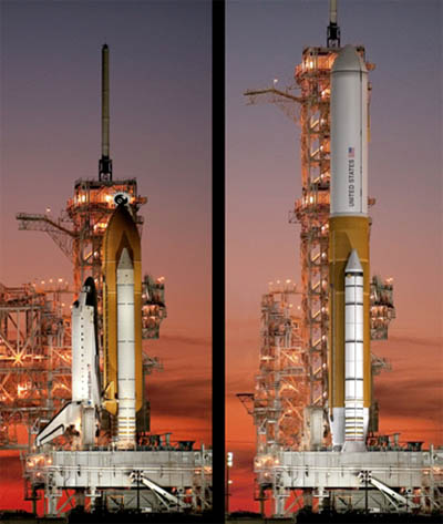 Committee members were eager to hear more Wednesday and accused NASA of not following instructions set in last year's authorization law. Cooke declined to project when a heavy-lift booster and crew capsule could be on the launch pad. Scott Pace, director of the Space Policy Institute at George Washington University, argued for more funding for NASA's exploration program, saying less money now will lead to more delays and rising costs later on. The heavy-lift rocket's "reference design" features a 27.5-foot-diameter first stage powered by five hydrogen-fueled space shuttle main engines and boosted by two five-segment solid rocket motors stemming from development already underway for the canned Ares 1 launcher. Such a rocket would meet the performance requirement from last year's authorization act, which told NASA to build a booster capable of carrying between 70 and 100 metric tons to low Earth orbit. An upper stage based on the J-2X engine, another holdover from the Ares rocket program, could be added later to increase the heavy-lift booster's lift capacity to orbit up to 130 metric tons, according to NASA. Cooke said NASA teams are studying alternative rocket concepts, including a kerosene-fueled core stage, to be included in the final report this summer. |