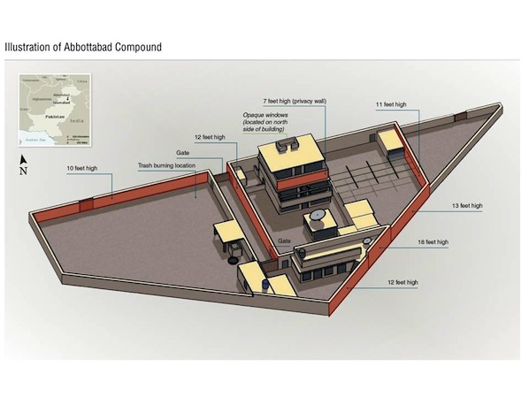 Details of Osama bin Laden's compound BY STEPHEN CLARK SPACEFLIGHT NOW Posted: May 5, 2011 Two images from DigitalGlobe satellites show the Osama bin Laden compound in Abbottabad, Pakistan. The top color image was captured in June 2005, while the black-and-white snapshot from Jan. 15 shows suburban development growing around the complex. The third image is a map of the compound provided by the U.S. government.