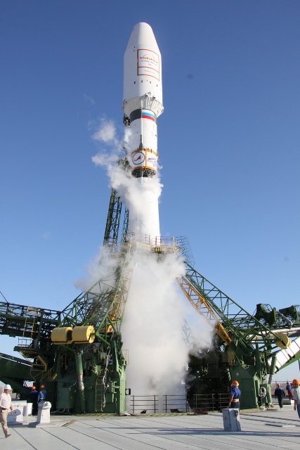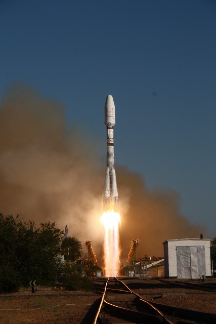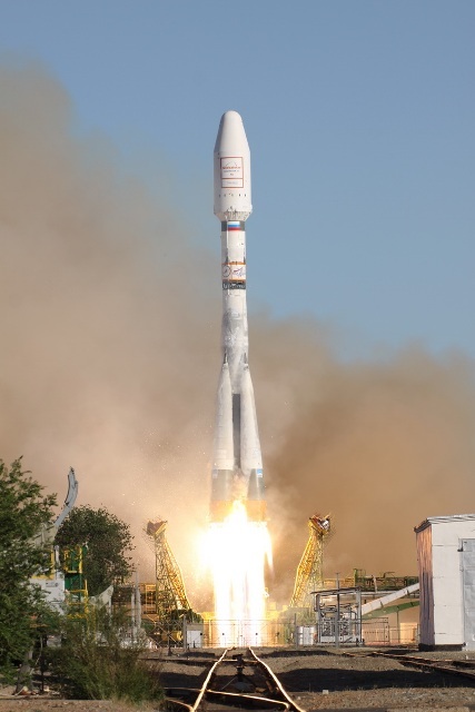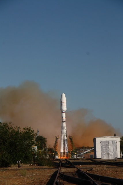 Soyuz rocket blasts off from Kazakhstan BY STEPHEN CLARK SPACEFLIGHT NOW Posted: July 13, 2011 A Soyuz rocket blasted off at 0227 GMT Wednesday (10:27 p.m. EDT Tuesday) from the Baikonur Cosmodrome in Kazakhstan. It successfully delivered six Globalstar mobile communications satellites to a 572-mile-high orbit less than two hours later. Photos: Roscosmos