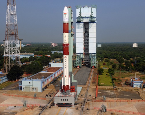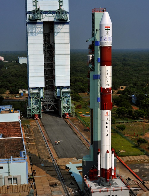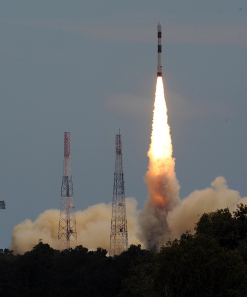 An Indian Polar Satellite Launch Vehicle blasted off at 11 a.m. local time (0530 GMT; 1:30 a.m. EDT) Wednesday from the Satish Dhawan Space Center on India's east coast. The 14-story rocket carried the Indo-French Megha-Tropiques climate satellite into orbit.