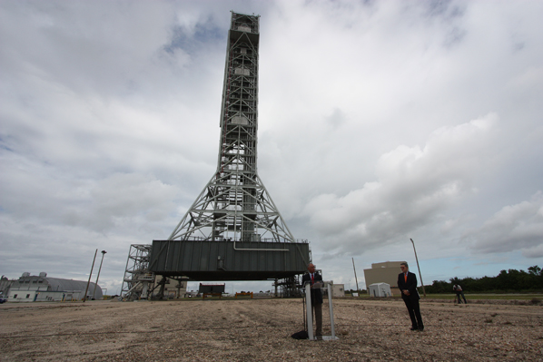 NASA intends to upgrade one of its Apollo-era treaded crawlers and an inactive mobile platform built for the canceled Ares launcher program to support the agency's colossal super-rocket, officially called the Space Launch System, in time for a test flight in 2017.