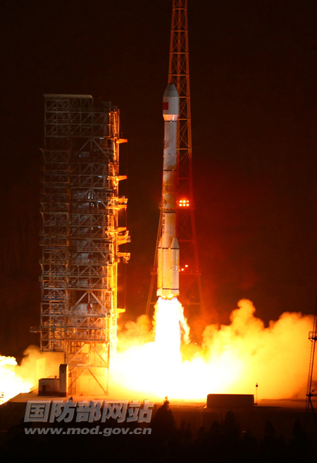 In China's third space launch of the year, a Long March 3C rocket blasted off Friday with a Beidou navigation satellite, expanding the country's counterpart to the U.S. Air Force GPS program.