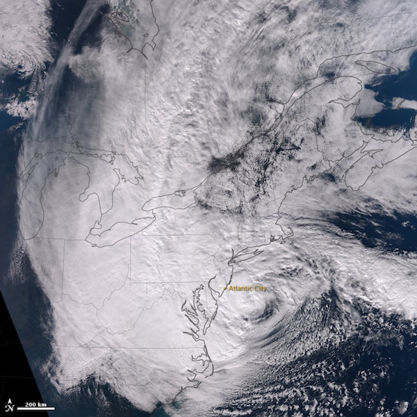 Hurricane Sandy inundated the U.S. East Coast with surging floods and brought damaging winds over New York City on Monday, and satellites captured astonishing imagery of the cyclone, which stretched 1,000 miles across at the time of landfall.