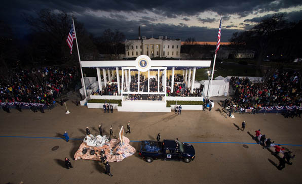 Two floats carrying a full-size replica rover and a mockup of the spacecraft traveled along the parade route and passed by the presidential observation box in front of the White House, where President Barack Obama, the First Family and the Biden's watched the bands and displays.
