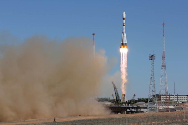 A Russian Soyuz rocket lifted off from the Baikonur Cosmodrome on Friday with a space capsule filled with mice, gerbils, geckos and other animals on a month-long flight to assess how the animals respond to the trials of space travel.