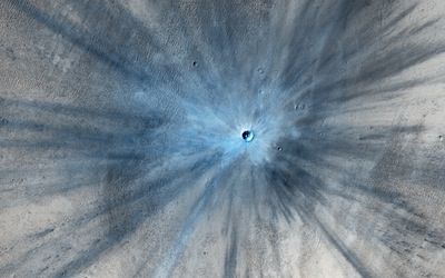 Scientists requested MRO's High-Resolution Imaging Science Experiment, or HiRISE, to take a closer look. The camera captures the sharpest views of Mars ever taken from orbit, and it turned its aperture toward the crater site to image the region Nov. 19, 2013. What they saw was a dazzling crater with ejecta rays extending outward in all directions up to 15 kilometers, or 9.3 miles, from the impact site. Whatever carved the bowl-shaped pit in the Martian bedrock caused one of the biggest explosive events ever seen on Mars since spacecraft began visiting the red planet. Alfred McEwen, HiRISE's chief scientist at the University of Arizona in Tucson, said the estimated 30-meter diameter of the new crater puts it among the largest recent impacts seen by the eagle-eyed camera. The biggest new crater previously found by HiRISE was 33.8 meters across, or about 111 feet in diameter. "But this one is more spectacular looking with prominent dark rays," says McEwen, a professor of planetary sciences. "Most new craters found are smaller than 10 meters (33 feet)." From the orbiter's altitude, the HiRISE camera has a pixel size of about one-quarter meter, or 10 inches. Scientists say incoming rocks and small asteroids generate about 200 fresh craters per year, but few are as eye-catching as the one seen in November. Follow Stephen Clark on Twitter: @StephenClark1. |