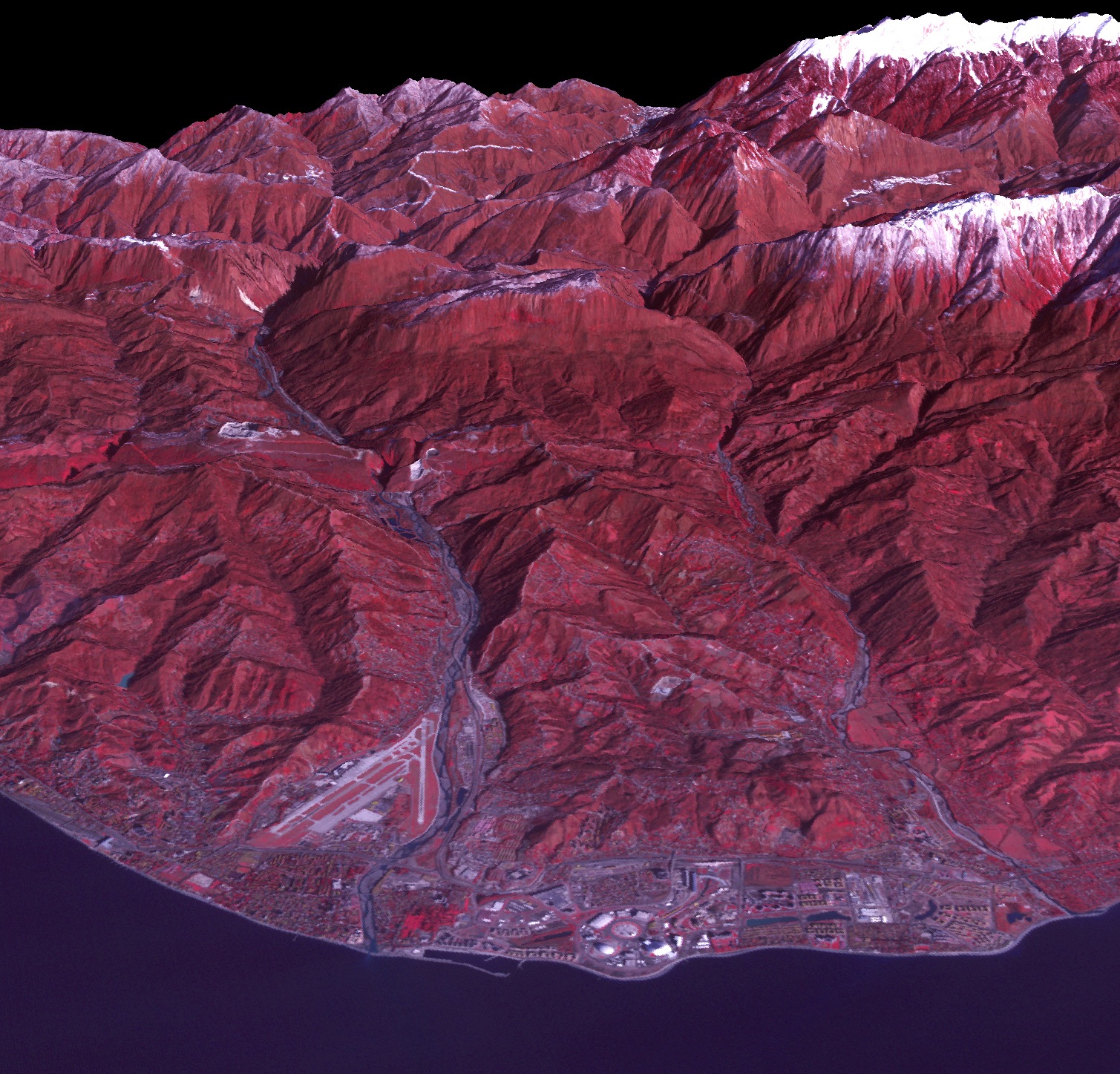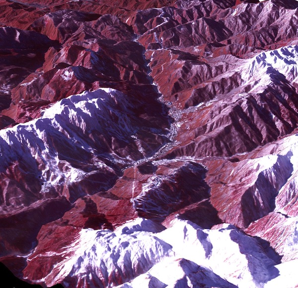 The Advanced Spaceborne Thermal Emission and Reflection Radiometer on NASA's Terra satellite recorded this view of Rosa Khutar ski resort near Sochi, Russia, in the valley at center. This region is hosting alpine events at the Winter Olympics, and ski runs are visible on the shadowed slopes on the left-hand side of the valley. Height has been exaggerated 1.5 times to bring out topographic details.In this image, red indicates vegetation, white is snow, and buildings appear in gray. See a larger version. Credit: NASA/GSFC/METI/ERSDAC/JAROS, and U.S./Japan ASTER Science Team