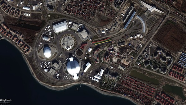 A commercial satellite operated by U.S.-based DigitalGlobe returned this high-resolution snapshot of Sochi Olympic Park. See a larger version. Credit: DigitalGlobe