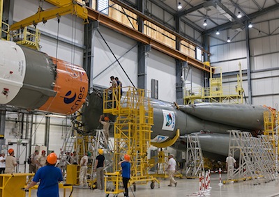 Russian Soyuz launchers have flown from the European-run space center in French Guiana since October 2011. Seven Soyuz missions have been completed successfully from the jungle launch base, lofting European Galileo navigation satellites, French surveillance satellites, a quartet of broadband communications satellites for O3b Networks Ltd., and Europe's Gaia star surveying probe. Another Soyuz launch delivered Europe's first Sentinel Earth observing satellite to orbit Thursday. Stephane Israel, Arianespace's chairman and CEO, announced the fresh order of Soyuz launchers in remarks after the conclusion of Thursday's mission. "Tonight was the seventh success of Soyuz from the Guiana Space Center," Israel said Thursday. "As with the heavy-lift Ariane 5 and lightweight Vega, Soyuz provides unrivaled quality, reliability and schedule assurance to our customers." In an interview in March, Israel said Arianespace was in the final stages of negotiating an agreement for additional Soyuz rocket launches from French Guiana. He said the price had not changed much from Arianespace's last order of 10 Soyuz rockets from Russia. "The price will not be very different from the previous order," Israel said in March. "We have been able to go for the price each partner wanted." Arianespace did not disclose the financial terms of its agreement with Roscosmos, the Russian federal space agency. Roscosmos chief Oleg Ostapenko attended the Soyuz launch at the Guiana Space Center on Thursday. "The agreement that was signed during the various negoations that we had, all this ensures that the work ahead of us to work on different additional payloads will be very successful," Ostapenko said through a translator. TsSKB Progress of Samara, Russia, is the builder of the Soyuz rocket. All Soyuz launches from French Guiana fly with a Fregat upper stage designed and manufactured in Russia by NPO Lavochkin. The European-funded, Russian-built Soyuz pad is located about eight miles northwest of the Ariane 5 and Vega launch pads at the Guiana Space Center. It took three years and cost European governments $800 million to build the Soyuz launch facility, which is known by its French acronym ELS. Other than a 17-story mobile servicing tower and four lightning masts, the launch pad is modeled after the Soyuz launch pad at the Baikonur Cosmodrome in Kazakhstan. Follow Stephen Clark on Twitter: @StephenClark1. |