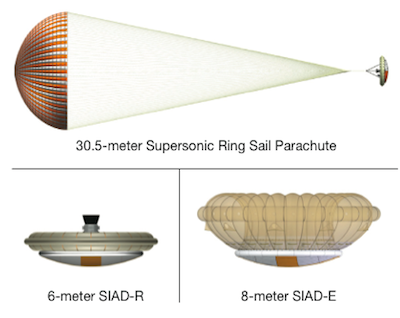 Flying at four times the speed of sound in the thin air near the edge of space, the test vehicle was expected to experience conditions similar to what a spacecraft would find plunging into the atmosphere of Mars prior to landing. The heaviest spacecraft ever sent to the surface of Mars -- NASA's Mars Science Laboratory, or Curiosity rover -- tipped the scales at about one ton. To get heavier robots to the surface, and eventual crewed spacecraft that could weigh 20 tons or more, NASA must develop better atmospheric braking systems. Enter the Low-Density Supersonic Decelerator, or LDSD, the first of at least three test vehicles to fly in a $200 million research program aimed at developing new technologies for future Mars missions. The first test vehicle's high-altitude balloon was scheduled for launch from the U.S. Navy's Pacific Missile Range Facility on Kauai, Hawaii, between 2:15 p.m. and 3 p.m. EDT. Initial attempts to launch the craft earlier this month were blocked by the weather, but officials said late Friday that forecasters expected acceptable conditions Saturday. "Landing on Mars is an extremely challenging thing to do," said Ian Clark, LDSD principal investigator at the Jet Propulsion Laboratory in Pasadena, Calif. "The atmosphere is extremely thin, it's about 1 percent the density of Earth's atmosphere. That means you need very large devices to react against the atmosphere to create the drag that we use to slow the vehicles down as they enter the atmosphere. "If you want to land things that are even heavier than the Mars Science Laboratory, if you want to land several tons -- and as you cast your eyes to the horizon and you think about landing humans on the surface of Mars, missions that will be 10 to 15 tons, 20 tons or more -- you're going to need extremely large drag devices to slow those vehicles down. We don't have those currently, and that's what LDSD is developing." The test vehicle features two new technologies. The first is an inflatable torus around a traditional heat shield known as the Supersonic Inflatable Aerodynamic Decelerator, or SIAD, that gives the test vehicle the general shape of a flying saucer. The second new technology is a huge parachute, the largest ever designed to deploy at more than twice the speed of sound.